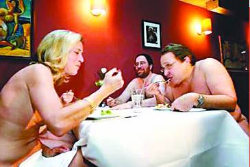 推開(kāi)這家餐館的大門(mén),首先看到的是一臉微笑的餐館老板約翰。他一年前開(kāi)了這家俱樂(lè)部式餐館,從不在媒體上打廣告,靠因特網(wǎng)和顧客口頭宣傳拉會(huì)員,來(lái)的絕大部分是回頭客。約翰點(diǎn)子多,就餐主題不斷花樣翻新,生意越做越好。今年2月,一群裸體愛(ài)好者發(fā)起裸體就餐月活動(dòng)。他們?cè)径嘣诤┗蛞巴饣顒?dòng),如今想進(jìn)入更“高尚、文雅的場(chǎng)所”。約翰的餐館成就了他們的想法。