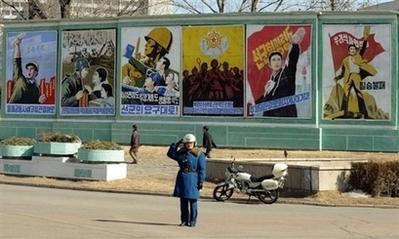 一名朝鮮警察在首府平壤的街道上站崗。