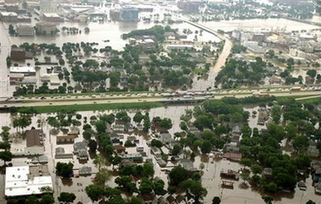 美國(guó)西中部地區(qū)最近幾天遭到了洪水的襲擊,一名男子因車輛墜入暴漲的河流而生命垂危,另外兩人則獲救。官員們估計(jì)錫達(dá)拉皮茲市有100個(gè)城區(qū)被洪水淹沒。林縣治安官多恩-擇利爾稱:“我們現(xiàn)在只能聽天由命了,對(duì)于那些在此之前從不祈禱的人們來說,現(xiàn)在可能是開始祈禱的一個(gè)時(shí)間了。我們將需要許多祈禱,人們將需要許多耐心和理解!敝伟补俜Q,他的辦公室也被淹沒,縣監(jiān)獄的犯人不得不被轉(zhuǎn)移。由于加緊了壘沙袋的工作,錫達(dá)河上流城市錫達(dá)福爾斯市和滑鐵盧市幸運(yùn)地躲過了洪水的襲擊。