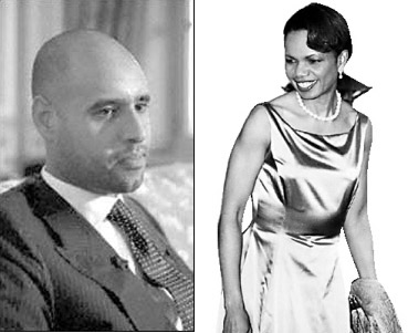 據(jù)7月9日出版的《環(huán)球時(shí)報(bào)》報(bào)道,阿拉伯媒體稱,此前紛紛報(bào)道的有關(guān)“賴斯正和一位阿拉伯領(lǐng)導(dǎo)人的兒子熱戀”的傳聞中,男主角正是利比亞領(lǐng)導(dǎo)人卡扎菲長(zhǎng)子賽義夫·伊斯拉姆!