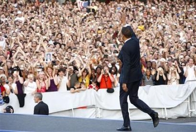 奧巴馬極受德國人歡迎,被譽為現(xiàn)代肯尼迪,民調(diào)顯示76%德國人希望他在11月大選勝出。不少柏林人周四在街上守候,希望一睹奧巴馬風采。德國伯爾基金會估計,會有超過10萬人到現(xiàn)場聽他發(fā)表演講,“德國人期待見證這一歷史時刻”。