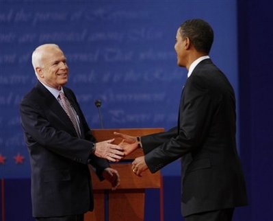 據(jù)路透社報(bào)道,9月27日早上,美國(guó)民主黨總統(tǒng)候選人奧巴馬與共和黨總統(tǒng)候選人麥凱恩的首場(chǎng)辯論在密西西比大學(xué)展開,兩人以華爾街金融危機(jī)以及布什政府提出的救市計(jì)劃展開唇槍舌劍。