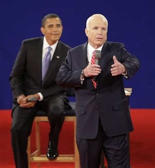 路透社報(bào)道,這位亞利桑那州參議員在雙方第一場(chǎng)辯論中避免看奧巴馬,而在7日的辯論中,他對(duì)奧巴馬直呼其名,甚至在提到奧巴馬投票支持某能源方案時(shí),用“那個(gè)人”指代奧巴馬。