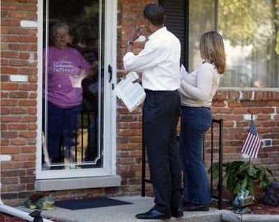 挨家挨戶拉票中,幾位居民向奧巴馬表達(dá)了對經(jīng)濟(jì)的憂慮;很多經(jīng)濟(jì)學(xué)家認(rèn)為美國經(jīng)濟(jì)正在走向衰退,由于全球金融危機(jī),上周美國主要股指下降了18個百分點(diǎn)。
