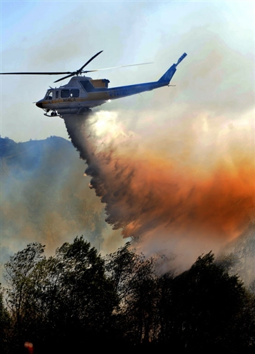 直升機(jī)在空中進(jìn)行滅火工作。