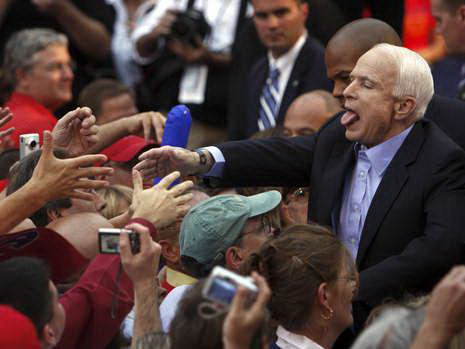 麥凱恩在9月22日進(jìn)行競(jìng)選時(shí)吐舌頭
