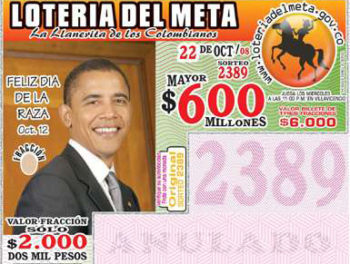 中新網(wǎng)10月24日電 綜合報道,美國總統(tǒng)大選進入最后沖刺階段,民主黨總統(tǒng)候選人奧巴馬各項民調(diào)持續(xù)領先,大有直取白宮之勢。奧巴馬在海外的人氣也是比許多人想象中更強勁,哥倫比亞一個城市便把奧巴馬的肖像印在了所有彩票上。