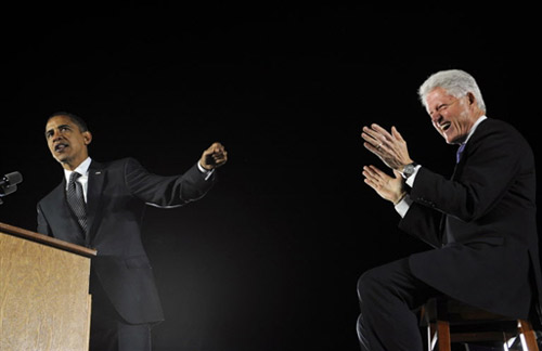 中新網10月30日電 綜合報道,美國前總統(tǒng)克林頓29日首次亮相奧巴馬的拉票集會。民主黨新舊兩位重頭人物握手言歡,共同呼吁變革。