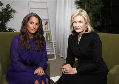 前應(yīng)召女郎阿什莉.杜普利(左)接受ABC電視臺(tái)主持人黛安.索耶的采訪。