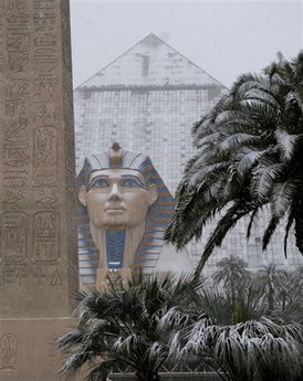 中新社12月19日電 拉斯維加斯是全球知名的賭城。這里夏天溫度常常超過40攝氏度,冬天白天的平均溫度也有15攝氏度。因為處在沙漠地帶,這里還是全美濕度最低的大城市之一。但就在17日到18日早上,這個棕櫚搖曳的沙漠之城迎來了一場罕見的大雪。