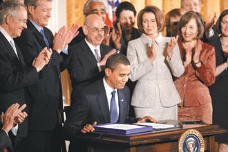 中新網(wǎng)2月6日電 據(jù)臺灣《聯(lián)合報(bào)》報(bào)道,美國眾院4日表決擴(kuò)大“州兒童醫(yī)保計(jì)劃”(SCHIP)法案,結(jié)果以290票對135票的壓倒性比數(shù)通過,奧巴馬總統(tǒng)隨即在白宮簽署使其生效,并稱之為邁向?qū)崿F(xiàn)他“全民醫(yī)保”競選承諾的第一步。