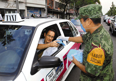 墨西哥城前日起口罩銷情突然暢旺,口罩迅即賣清,衛(wèi)生當(dāng)局則派員到國(guó)際機(jī)場(chǎng)、地鐵站和巴士站派發(fā)口罩。墨城當(dāng)局決定學(xué)校停課,610萬學(xué)生留家。市內(nèi)一切由國(guó)家和市政府舉辦的文化活動(dòng)暫停。