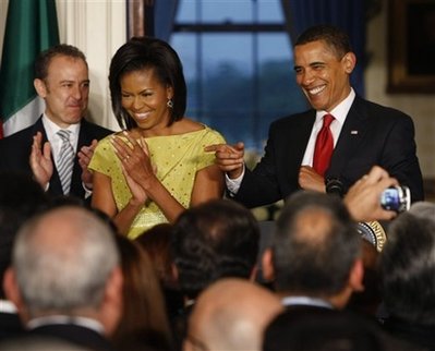 中新網(wǎng)5月5日電 據(jù)美聯(lián)社等媒體消息,美國總統(tǒng)奧巴馬偕夫人4日在白宮參加墨西哥傳統(tǒng)節(jié)日慶祝。稍早時奧巴馬還會見了墨西哥駐美國大使。