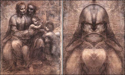 畫作“圣母子與圣安妮”中,似乎也反射出類似影像。專家說,達芬奇打算藉畫作表現(xiàn)出上帝本身,并且激發(fā)恐懼。在“施洗者約翰”畫作中也藏著另一幅圖像,。而以鏡子反射“最后的晚餐”,似乎也會發(fā)現(xiàn)圣杯倒放在桌上。
