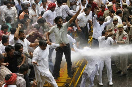 暴亂中,數(shù)千示威者封鎖了通往首都新德里的道路,威脅切斷牛奶、蔬菜供應(yīng)。印度軍隊(duì)和警察在圍剿過程中向示威者開火,造成40余人死亡。然而,瞿族人前仆后繼、不惜以生命來抗?fàn)幍,不是抗議自己種姓低而遭受的歧視,反而是抗議自己的種姓等級(jí)不夠低。