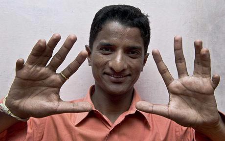 印度一名男子先天畸形,長有12個(gè)手指和14個(gè)腳趾,這個(gè)數(shù)字打破了此前同樣是一名印度人創(chuàng)造的長有12個(gè)手指和13個(gè)腳趾的世界紀(jì)錄。
