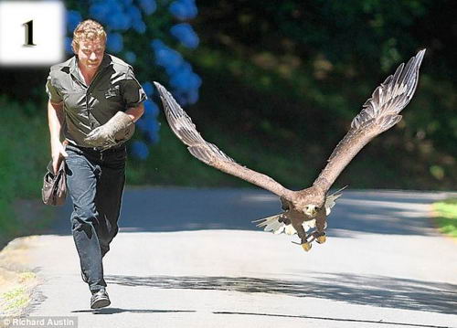 白尾海雕九十年代初期在英國(guó)絕跡,不過(guò)在啟動(dòng)重新引進(jìn)項(xiàng)目后,蘇格蘭地區(qū)已有一些白尾海雕。這只名為埃維的白尾海雕是在比利時(shí)人工飼養(yǎng)的,“她”兩歲的時(shí)候來(lái)到亨吉斯在達(dá)特穆爾的養(yǎng)鷹場(chǎng)。養(yǎng)鷹場(chǎng)的所有鳥都要經(jīng)常放飛鍛練,但亨吉斯也采取了一些措施以確保它們獲得一些“玩樂(lè)時(shí)間”。