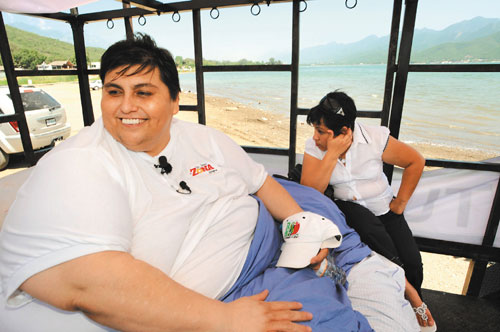 中新網(wǎng)8月12日電 綜合報(bào)道,重達(dá)310公斤的墨西哥超級(jí)胖子烏里韋10日在女友陪伴下,搭乘特制拖拉貨車(chē),到蒙特雷一座湖邊賞景。