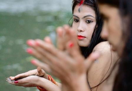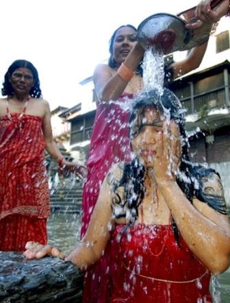 中新網(wǎng)9月5日電 綜合報(bào)道,9月4日是印度教傳統(tǒng)節(jié)日提吉節(jié)的最后一天。在尼泊爾加德滿都,印度教女子在河中沐浴,已婚的印度教婦女為自己的丈夫祈禱;未婚的少女們,則祈愿自己將來能找到一個(gè)英俊如意的丈夫。