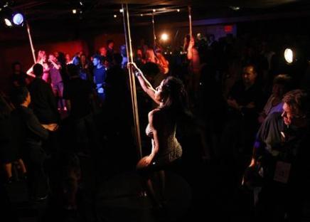 隨后,時(shí)代廣場(chǎng)附近的一家酒吧改造成一家紳士俱樂部,供模特們進(jìn)行鋼管舞表演。表演時(shí),模特穿上最新款的內(nèi)衣,一次4人,在鋼管上下來回舞動(dòng),極盡挑逗。