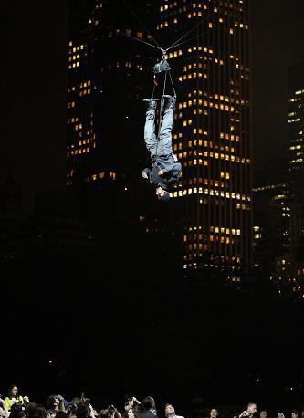 中新網(wǎng)9月24日電 醫(yī)師說,試圖在紐約中央公園表演倒吊三天的美國知名街頭魔術(shù)師戴維-布萊恩,23日進(jìn)入倒吊第二天,健康狀況良好。