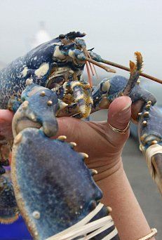 美國康涅狄格大學的羅納德教授通過研究發(fā)現(xiàn),導致龍蝦身體變藍的原因是龍蝦體內某種蛋白質過量使其外殼變色。當龍蝦體內過量的蛋白質和紅色紅素分子(也叫蝦青素或者蝦紅素)進行結合后,形成一種甲殼藍蛋白的藍色復合物,從而使其外殼呈現(xiàn)藍色。海洋中出現(xiàn)藍色龍蝦的概率大約為二百萬分之一。