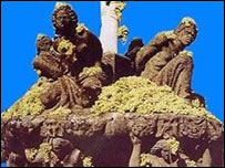 數(shù)千升當?shù)禺a(chǎn)的白葡萄酒被輸送到鎮(zhèn)中央廣場的一座噴泉。
