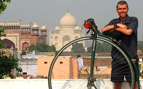 英國一男子日前使用一輛前輪大后輪小的自行車,在兩年半的時間里成功環(huán)繞地球35200公里,途徑世界上4個大洲23個國家。