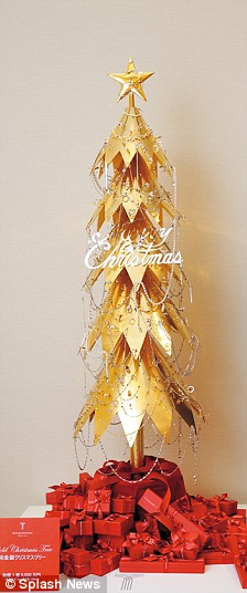 據(jù)英國媒體報道,日本的這棵圣誕樹是一棵用24k金打造的的黃金樹,上面鑲有的寶石多達240顆,其中還包括鉆石小掛件及珍珠串。這棵黃金圣誕樹重達21公斤,價值100萬英鎊。