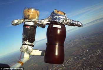 學(xué)生們給泰迪熊穿的太空服也是精心研制的結(jié)果,能夠經(jīng)受零下53攝氏度的低溫,以保證泰迪熊和攜帶的儀器在高空正常工作。此外,學(xué)生們還在玩具上安裝了溫度傳感器,地面可通過筆記本電腦實時監(jiān)控。