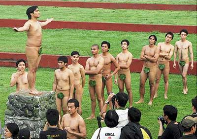 中新網(wǎng)12月15日電 據(jù)新加坡《聯(lián)合早報(bào)》報(bào)道,菲律賓大學(xué)日前為慶祝創(chuàng)校一百周年,在校區(qū)內(nèi)舉行年度裸體活動(dòng)。共一百名男性學(xué)生、老師和校友,僅穿著縫有綠葉的肉色內(nèi)褲,輪流站在石臺(tái)上,張開(kāi)雙手模仿校內(nèi)知名裸體雕像,象征對(duì)真理和知識(shí)無(wú)止境的追求。