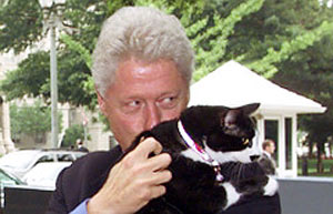 索克斯曾是一只普普通通的流浪貓,或許是受命運(yùn)之神的眷顧,索克斯被克林頓的女兒切爾西收留為寵物。索克斯背部毛色漆黑,四個(gè)爪子卻呈雪白色,如同穿了四只白色的襪子一樣可愛(ài),因此被命名為索克斯(Socks,英文原意是短襪)。1992年,克林頓入主白宮,索克斯也隨著第一家庭到了華盛頓,升格為“第一貓”。在白宮的8年里,它多次追隨主人出現(xiàn)在公眾面前;它的照片還出現(xiàn)在白宮的圣誕卡片上。克林頓一家離開(kāi)白宮后,索克斯由柯里收養(yǎng)。不過(guò)前“第一家庭”并沒(méi)有和它切斷聯(lián)系,在競(jìng)選2008年美國(guó)總統(tǒng)時(shí),希拉里頻頻把索克斯掛在嘴邊,試圖軟化“鐵娘子”形象。(汝智)
