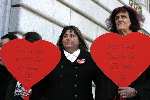 中新網(wǎng)2月13日電 據(jù)英國(guó)媒體報(bào)道,美國(guó)舊金山12日拉開一年一度的“自由結(jié)婚周”活動(dòng)的序幕,數(shù)百對(duì)同性戀夫婦聚集在市政廳抗議,要求發(fā)放結(jié)婚證。
