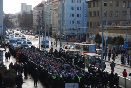 大約400名觀看足球聯(lián)賽巴尼克隊與布拉格斯拉維亞隊比賽的巴尼克隊球迷當(dāng)天傍晚乘坐火車從386公里以外的俄斯特拉發(fā)市到達首都布拉格后,早已恭候在火車站外的大隊防暴警察押送他們步行3公里直接去斯拉維亞體育場。比賽一結(jié)束又立即重新把他們押送回火車上,讓他們馬上回家,禁止他們?nèi)ナ锥际兄行聂[事。當(dāng)晚比賽巴尼克隊以0:1負(fù)于斯拉維亞隊,其間沒有發(fā)生大規(guī)模球迷騷亂,巴尼克隊球迷深夜2時回到家鄉(xiāng)。