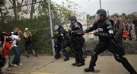 中新網(wǎng)9月25日電 24日,二十國(guó)集團(tuán)峰會(huì)主辦城市匹茲堡發(fā)生千人游行示威,抗議資本主義制度。示威者砸壞了市中心多家沿街店鋪窗戶,警方不得不動(dòng)用胡椒瓦斯(pepper gas)和警棍驅(qū)散抗議人群。