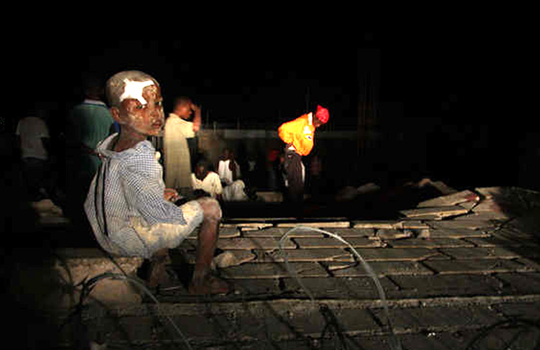 數(shù)以萬計(jì)的生還者在戶外過夜,由于食物短缺、食水不潔,能否熬到救援物資到位,尚是未知數(shù)。太子港市中心的戰(zhàn)神廣場彷佛變成了一個(gè)巨型露天難民營,災(zāi)民只能從公共水池中舀不干凈的池水解渴,帳篷布滿灰塵,到處散發(fā)著尿臭,炎熱的天氣使味道更為難聞。許多人全身不是污漬便是傷痕,還有人躺在地上慘呼。