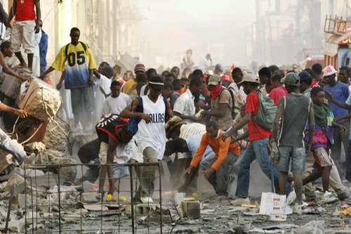 太子港街頭的搶掠事件已蔓延至市中心多個地區(qū),星期一有數(shù)百名青少年爬過被震損的墻壁,闖入多間店鋪大肆搜掠,任何東西都不放過,其中牙膏更成為搜掠目標(biāo),因?yàn)榭梢杂脕硗吭诒强紫卵谏w全市充斥的腐尸味。