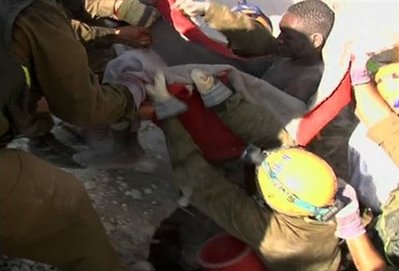 中新網(wǎng)1月23日電 綜合外電報(bào)道,海地再次上演生命奇跡,一名老年女性與一名年輕男性,在海地地震廢墟中被埋長(zhǎng)達(dá)10天后,于22日被成功救出。