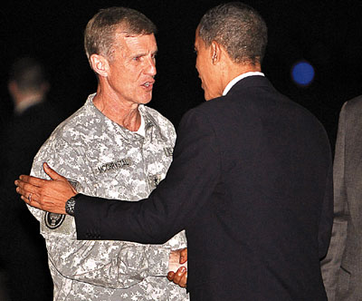 白宮22日傳召在阿富汗喀布爾的麥克里斯特爾,23日將到白宮,據(jù)稱奧巴馬“憤怒”。奧巴馬是有權(quán)力辭退麥克里斯特爾,前任的司令就是因為白宮希望有“新思維”而被炒,現(xiàn)時未知麥克里斯特爾會否丟官。而美防長蓋茨批評他“犯下大錯”。