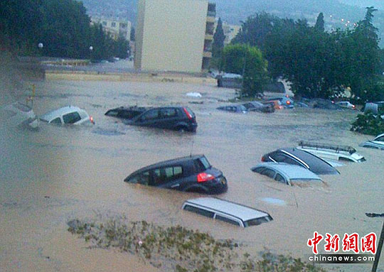 在受災(zāi)最重的德拉吉尼昂鎮(zhèn),短短數(shù)小時(shí)雨量高達(dá)300毫米,河川水位暴漲2.4米,居民爬到住宅屋頂上躲避,停放路旁的汽車全被洪水沖走,居民形容水災(zāi)造成的混亂有如“末日”。