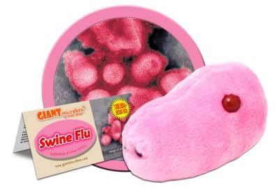 甲型H1N1流感病毒玩具外型十分可愛,長約17厘米,像顆放大版的粉紅色蕓豆,毛絨絨的,孩子們抱在懷里愛不釋手。除了甲流病毒毛絨玩具,竟然還有以淋病病毒、艾滋病病毒、炭疽病毒、衣原體病毒和臭蟲為原型的毛絨玩具系列。