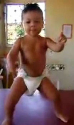 這段影片中,一名穿上了尿片的小男孩,跳著似乎模仿著名扭屁股跳舞藝人如“貓王”及影星約翰·特拉沃爾塔在電影《危險人物》的成人舞姿,成了錄像分享網(wǎng)站YouTube一個近期的熱門人物。