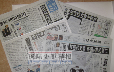 此次“備忘錄”文件直接證實了“沖繩核密約”的存在,這在很大程度上也提高了其他3個密約存在的可能性。因此,“備忘錄”一出現(xiàn),頓時成為日本媒體關(guān)注的焦點。繼《讀賣新聞》拔得頭籌之后,23日的日本各大報紙頭版,都對密約問題進行了大篇幅的跟蹤報道!∽悦顸h執(zhí)政時,對上述密約的存在一概予以否認。民主黨上臺后,新外相岡田克也已經(jīng)組織了專門的調(diào)查項目,在外務(wù)省檔案中查證是否存在密約。但是,之前關(guān)于“沖繩核密約”的調(diào)查結(jié)果是:“外務(wù)省沒有保存這份文件。”對此,日本《每日新聞》的解讀是:當(dāng)時圍繞密約的外交行動并沒有通過外務(wù)省當(dāng)局,而是委托國際政治學(xué)者、京都產(chǎn)業(yè)大學(xué)教授若泉敬個人交涉的。因此外務(wù)省沒有記錄亦屬正常。而佐藤信二也透露,在當(dāng)年發(fā)現(xiàn)密約之后,他曾經(jīng)找到外務(wù)省的一些官僚,希望這一文件能夠由外務(wù)省外交史料館保存,但對方卻說:“這不是官方文件,而是個人文件!