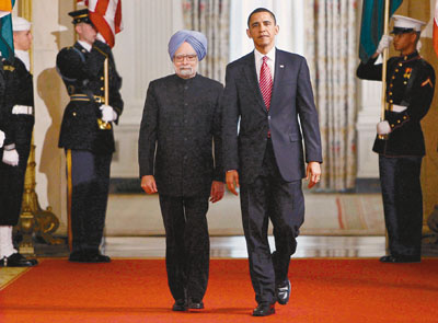該報(bào)分析認(rèn)為,辛格訪美時(shí)機(jī)微妙,原因是奧巴馬表明將與中國一同應(yīng)對(duì)全球重大問題,觸動(dòng)印度的神經(jīng),辛格此行有“防美親中”之意。為平息印度的“不滿”,美方?jīng)Q定先由副總統(tǒng)拜登、國務(wù)卿希拉里和國防部長(zhǎng)蓋茨為辛格舉行歡迎午宴,晚上則由奧巴馬第一次設(shè)國宴歡迎外賓,給足了辛格面子。