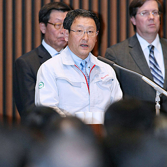 身著一身灰色夾克式工作服的豐田章男在公司總部向2000多名在場(chǎng)的員工鼓勁稱:“讓我們抖擻精神,以謙卑的態(tài)度和十足的信心迎接未來的挑戰(zhàn)”。他說,從今天起,豐田公司將“從頭再來”。