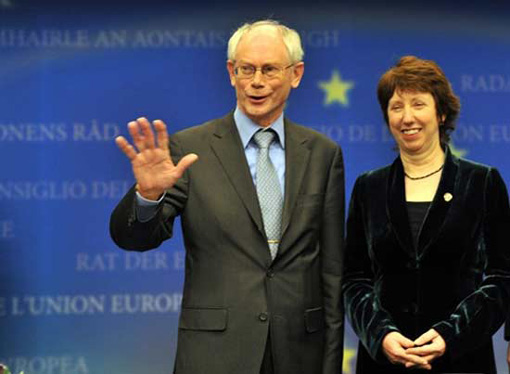 中新社北京十一月二十日電 布魯塞爾消息:歐盟特別峰會(huì)于當(dāng)?shù)貢r(shí)間十九日在比利時(shí)布魯塞爾召開,比利時(shí)首相赫爾曼·范龍佩(Herman Van Rompuy )當(dāng)選為首位歐洲理事會(huì)常任主席,來自英國的歐盟貿(mào)易委員凱瑟琳·阿什頓(Catherine Ashton)當(dāng)選為歐盟外交和安全政策高級(jí)代表。