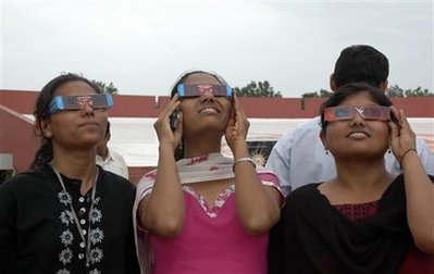 印度空軍目前已經(jīng)請科學(xué)家乘坐專機(jī)全程監(jiān)控這次日全食。但天氣預(yù)報(bào)說一些地區(qū)的觀測效果因天氣影響不佳。