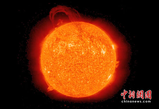 中新網(wǎng)4月23日電 據(jù)日本共同社報道,美國宇航局(NASA)日前公布了一幅由2月發(fā)射升空的太陽觀測衛(wèi)星“SDO”拍攝的巨型日珥照片。拍攝時間為3月30日。據(jù)悉這是首次拍攝到如此清晰的日珥照片,研究人員也對此頗感驚異。