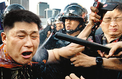中新網(wǎng)5月31日電 韓國(guó)警方與支持已故總統(tǒng)盧武鉉的示威群眾30日發(fā)生沖突,警方徹夜進(jìn)行強(qiáng)力驅(qū)離。