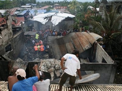 菲律賓軍機墜入居民區(qū) 機上8名士兵全部死亡(圖)
